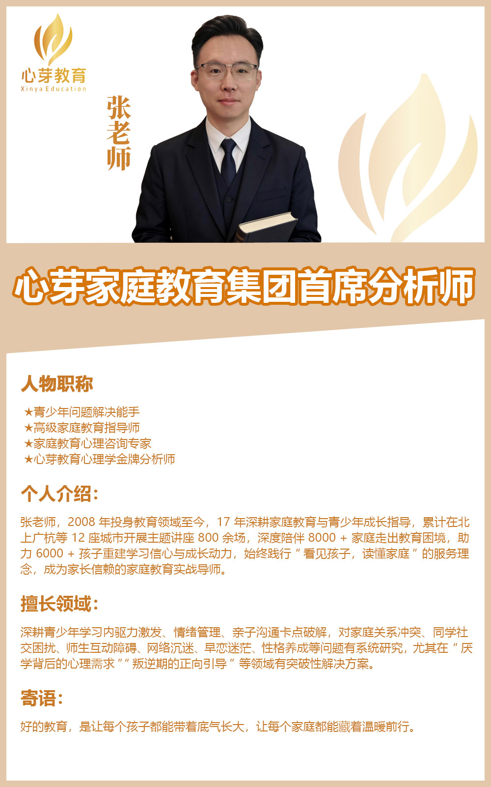 心芽教育从2017年发展至今,解决了上万名孩子的教育问题,帮助了上万组家庭走出教育困境。 我们专注为所有家庭提供:教育咨询辅导、针对性的成长计划、亲子教育互动、学习学业规划、心理障碍疏导、家庭关系调节等服务。我们有着成熟的线上线下解决方案,旨在系统解决教育中出现的厌学、叛逆、网瘾、社交、亲子关系、心理障碍等核心问题。 心芽教育由教育专家、心理学导师、教育顾问组成专业的教育团队,根据每个家庭的具体问题和需求,提供定制化的解决方案。帮助家长创造一个充满“爱、支持、积极”的家庭环境,进而改变孩子问题、促其正向发展。 “心芽教育,让每一颗心灵茁壮成长,让教育从心开始!”