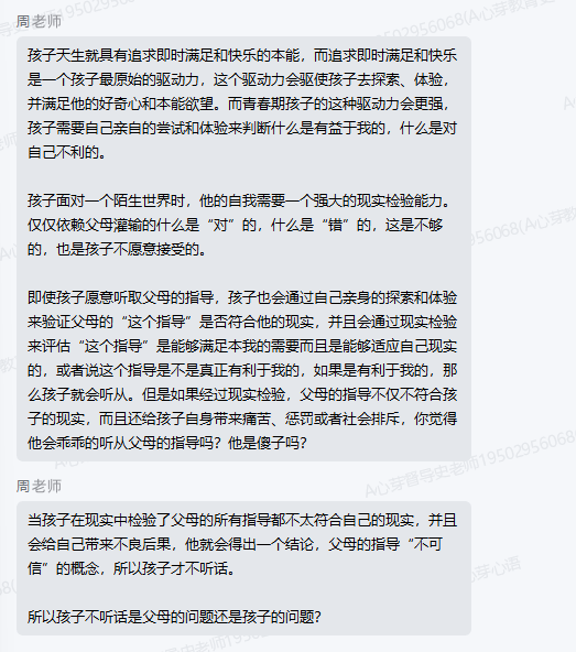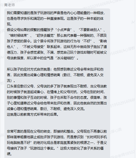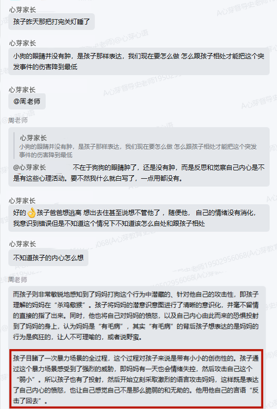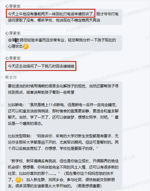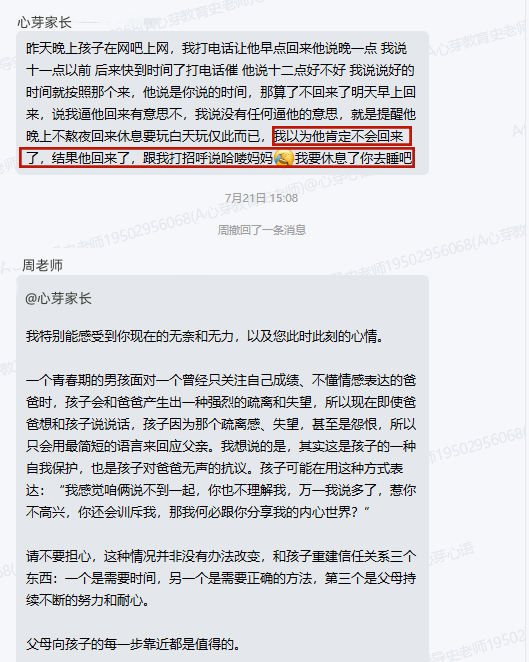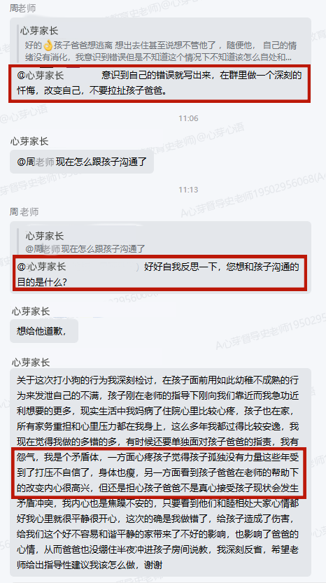 ▼家长向家导请教与孩子应该怎么相处,家导老师给出方案并对家长的检讨进行了点赞鼓励