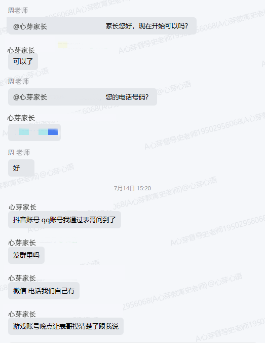 ▼学导老师通过家长提供的联系方式,链接孩子。
