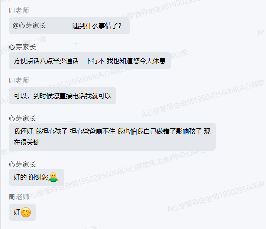 ▼学导与孩子沟通后,及时在群里进行反馈
