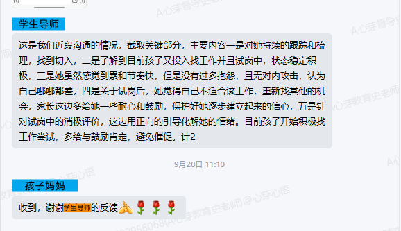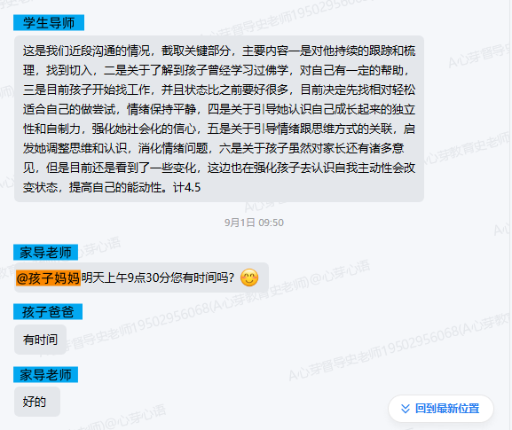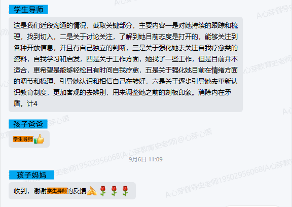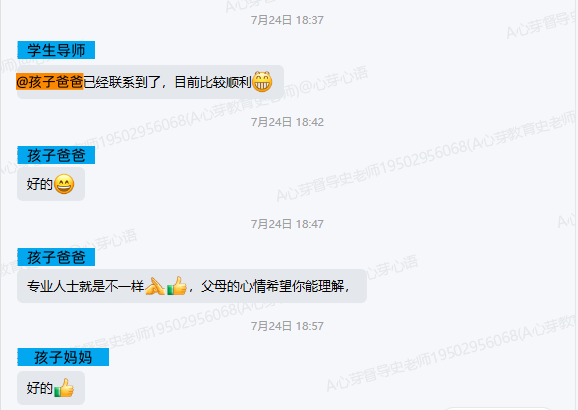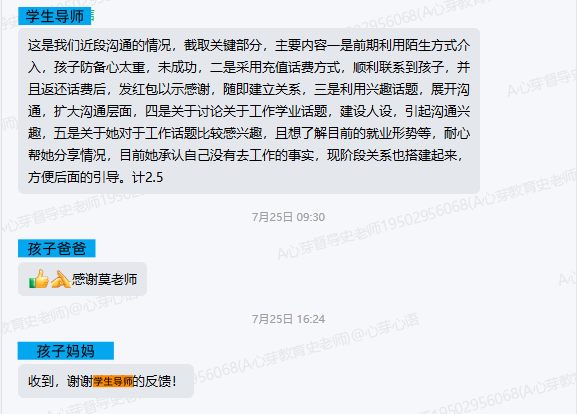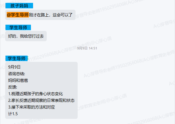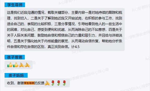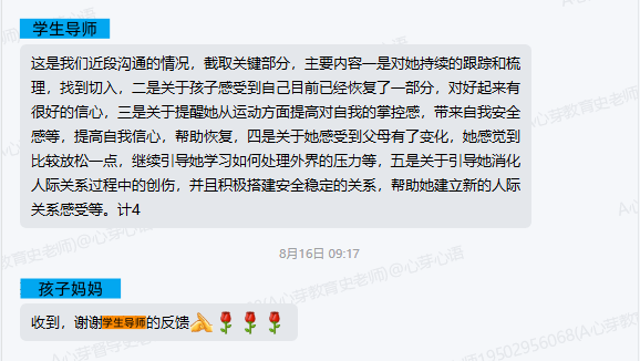 ▼链接孩子后,学导对家长进行了反馈。